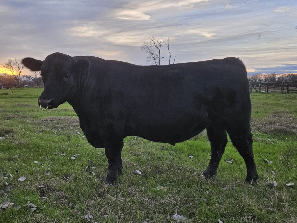 This Connealy Commerce son has great EPDs and is super gentle. He spent a short time at 12-15 months in the show ring. He has a stacked pedigree and is easy on the eyes. He brings genetics from the very successful Dixie Farms Angus herd.
